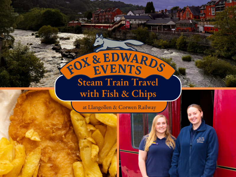 £90.00A vintage, steam-hauled train trip through the pretty Dee Valley from Corwen (LL21 0DN) to Llangollen and return.